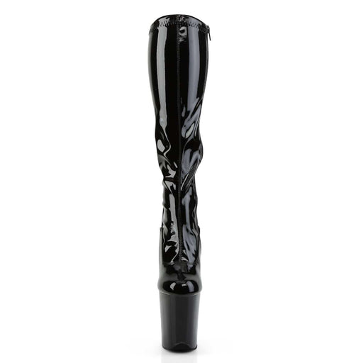 FLAMINGO 2000 Black Stretch Patent/Black Platform Stretch Knee Boot, Side ZipDetails: 8 Inch Heel, 4 Inch Platform Brand: Pleaser.