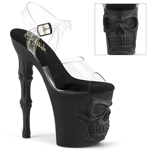 View full details8 inch Finger Bone Heel, 4 inch Skull Platform Ankle Strap Sandal