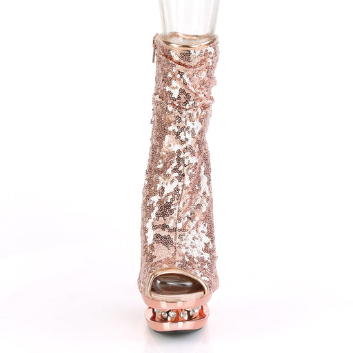 BLONDIE R 1008 Rose Gold Sequins/Rose Gold Chrome Platform Sequined Open Toe Ankle Boot, Side ZipDetails: 6 Inch Heel, 1 1/2 Inch Platform Brand: P...