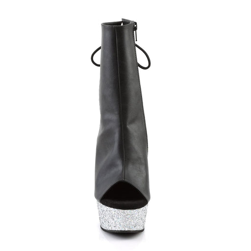 DELIGHT 1018LG Black Faux Leather/Silver Multi Glitter Platform Open Toe/Heel Ankle Boot, Side ZipDetails: 6 Inch Heel, 1 3/4 Inch Platform Brand: ...
