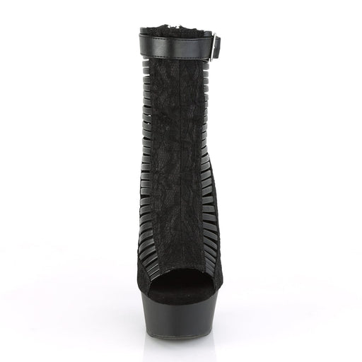 DELIGHT 600 27LC Black Faux Leather-Fabric/Black Matte Platform Open Toe Strappy Ankle Bootie, Back ZipDetails: 6 Inch Heel, 1 3/4 Inch Platform Br...