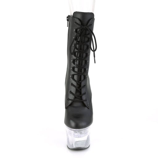 FLASHDANCE 1020 7 Black Faux Leather/Clear Platform LED Illuminated Ankle Boot, Side ZipDetails: 7 Inch Heel, 2 3/4 Inch Platform Brand: Pleaser.
