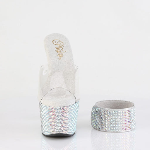 BEJEWELED 712RS Clear/Silver Multi Rhinestones Platform Rhinestone Embellished Ankle Cuff Slide with CuffDetails: 7 Inch Heel, 2 3/4 Inch Platform ...