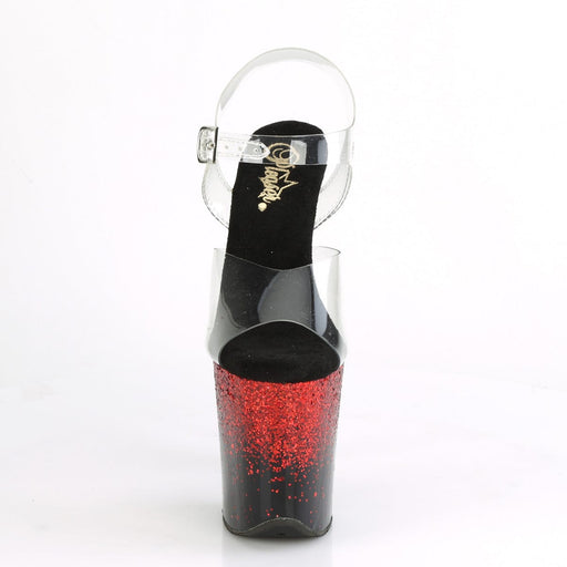 FLAMINGO 808SS Clear/Black-Red Multi Glitter Platform Ankle Strap SandalDetails: 8 Inch Heel, 4 Inch Platform Brand: Pleaser.