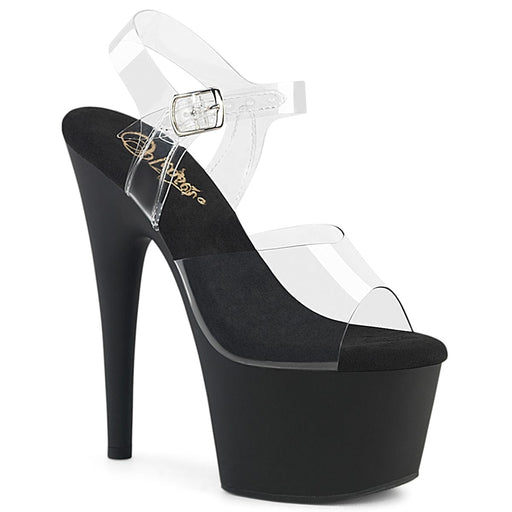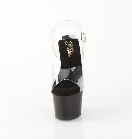 ADORE 727RS Clear-Black/Black Platform Ankle Cuff Sandal with Rhinestones, Back ZipDetails: 7 Inch Heel, 2 3/4 Inch Platform Brand: Pleaser.
