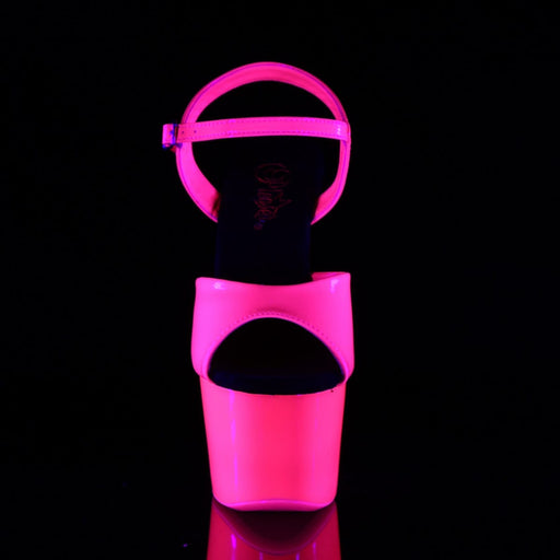 ADORE 709UV Neon Hot Pink Patent/Neon Hot Pink Platform UV Reactive Ankle Strap SandalDetails: 7 Inch Heel, 2 3/4 Inch Platform Brand: Pleaser.