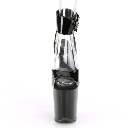 FLAMINGO 1018 Black Patent/Black Platform Open Toe/Heel Ankle Boot, Side ZipDetails: 8 Inch Heel, 4 Inch Platform Brand: Pleaser.