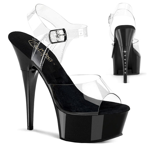 ADORE 708LN Clear/Black Platform Ankle Strap Sandal with Clear Stripe BottomDetails: 7 Inch Heel, 2 3/4 Inch Platform Brand: Pleaser.