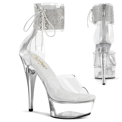 6 Inch Heel, 1 3/4 Inch Platform Rhinestone Ankle Cuff Sandal, Back Zip