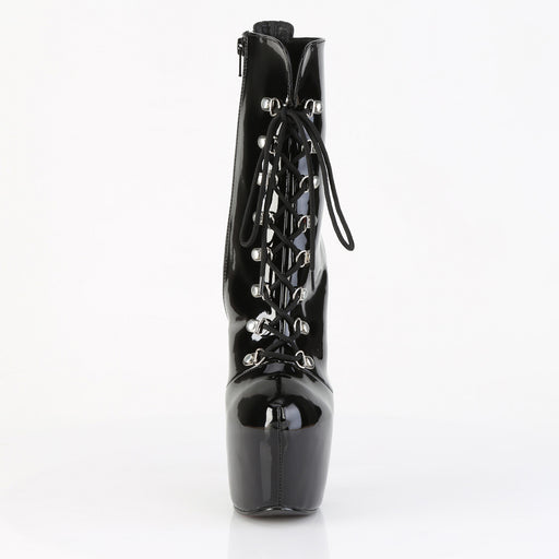 DELIGHT 1018 Black Faux Leather/Black Platform Open Toe/Heel Platform Ankle BootDetails: 6 Inch Heel, 1 3/4 Inch Platform Brand: Pleaser.