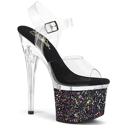 View full detailsESTEEM 708LG Clear/Clear-Black Multi Glitter Platform Ankle Strap SandalDetails: 7 Inch Heel, 3 Inch Platform Brand: Pleaser.