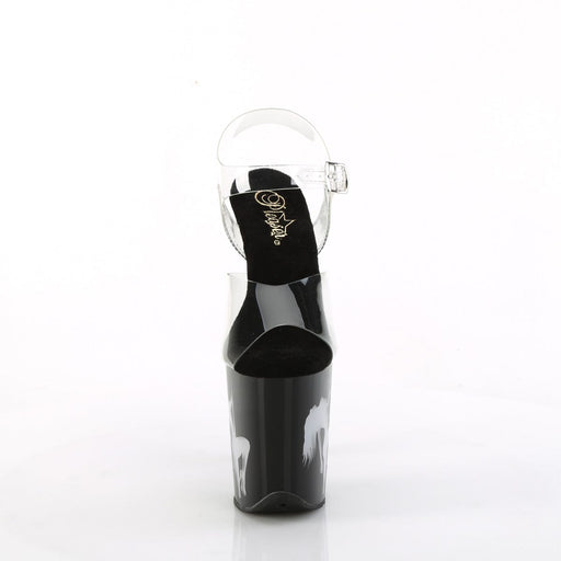 MOON 708DIA Clear/Black Cut-Out Platform Ankle Strap Sandal with PrismsDetails: 7 Inch Heel, 2 3/4 Inch Cut-Out Platform Brand: Pleaser.