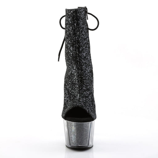 View full detailsADORE 1018G Black Glitter/Black Glitter Platform Glitter Ankle Boot, Side ZipDetails: 7 Inch Heel, 2 3/4 Inch Platform Brand: Pleaser.