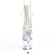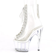Additonal Description: 7" Heel, 2 3/4" Platform. 7" (178mm) Heel, 2 3/4" (70mm) Platform Open Toe/Heel Lace-Up Front Ankle Boot w/Rhinestone Embellishment Along Front Panels & Back