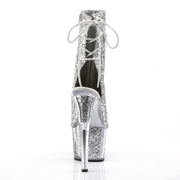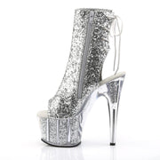 ADORE 1018G Silver Glitter/Silver Glitter Platform Glitter Ankle Boot, Side Zip