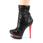 Additonal Description: 6" Heel, 1 1/2" Platform. 6" (152mm) Heel, 1 1/2" (38mm) Platform Two Tone Ruched Sequined Ankle Boot Featuring Rhinestone Accents in Mid Platform, Inner Side Zip Closure