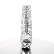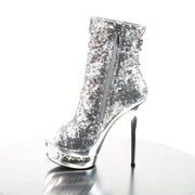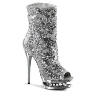 BLONDIE R 1008 Silver Sequins/Silver Chrome Platform Sequined Open Toe Ankle Boot