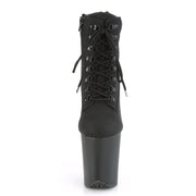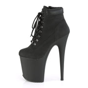 Additonal Description: 8" Heel, 4" Platform. 8" (200mm) Heel, 4" (100mm) Platform Lace-Up Front Bootie Featuring Padded Collar & Rubber Lug Outsole, Inner Side Zip Closure