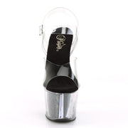 Additonal Description: 7" Heel, 2 3/4" Platform. 7" (178mm) Heel, 2 3/4" (70mm) Platform Ankle Strap Sandal w/ Tinted Heel Featuring Glitter Inserts in the Platform Bottom