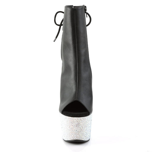View full detailsBEJEWELED 1018DM 7 Clear/Silver Multi Rhinestones Platform Open Toe/Heel Ankle Boot, Side ZipDetails: 7 Inch Heel, 2 3/4 Inch Platform Brand: Pleaser.