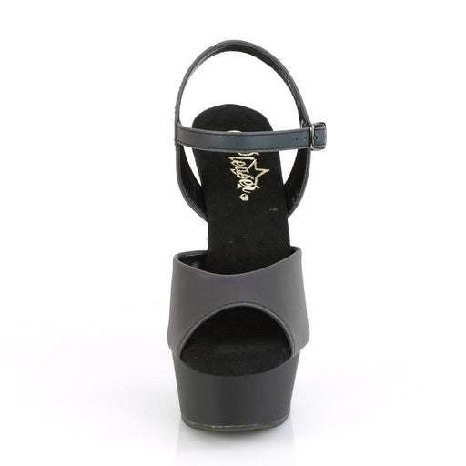 DELIGHT 621 Black Faux Leather/Black Matte Platform Peep Toe Criss Cross SandalDetails: 6 Inch Heel, 1 3/4 Inch Platform Brand: Pleaser.