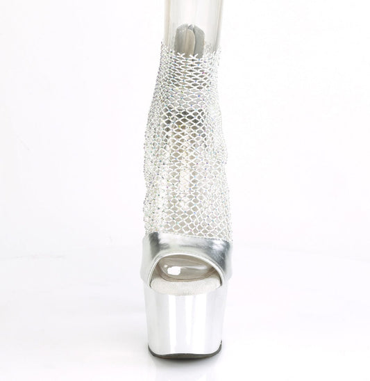 SAVE 38% Final SaleADORE-765RM Silver Metallic Pu-Rhinestones Mesh/Silver Chrome