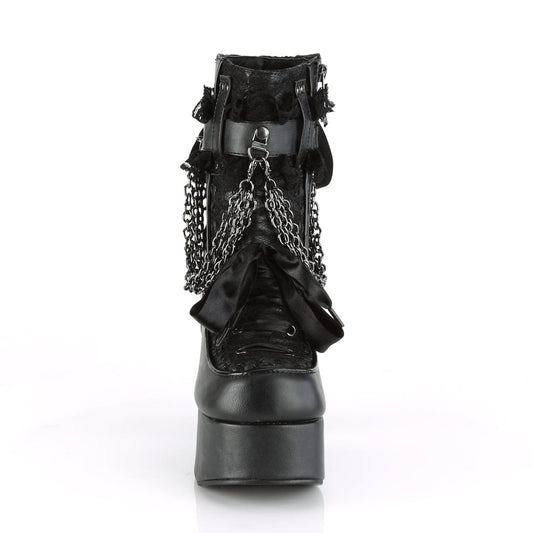 CHARADE-110 Black Vegan Leather-Lace Overlay