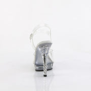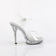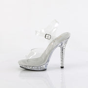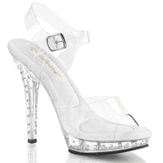 Additonal Description: 5" Heel, 3/4" Platform. 5" (12.7cm) Heel, 3/4" (1.9cm) Platform Ankle Strap Sandal Featuring Rhinestones Studded on the Heel and Platform Bottom