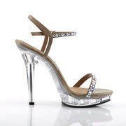Additonal Description: 5" Heel, 3/4" Platform. 5" (12.7cm) Heel, 3/4" (1.9cm) Platform Ankle Strap Sandal with Rhinestones Embellishment