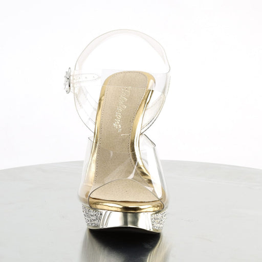 ELEGANT 408 Clear/Gold Chrome Platform Ankle Strap Sandal with RhinestonesDetails: 4 1/2 Inch Heel, 1 Inch Platform Brand: Fabulicious.