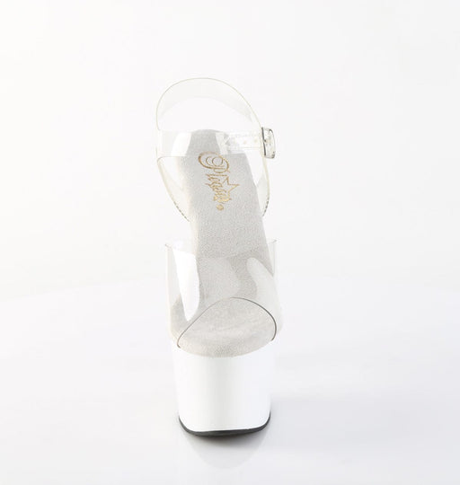 ADORE 708LG Clear/Silver Multi Glitter Platform Ankle Strap SandalDetails: 7 Inch Heel, 2 3/4 Inch Platform Brand: Pleaser.