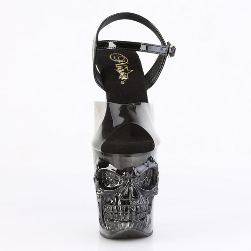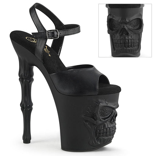 RAPlatformURE 809 Black Faux Leather/Black Matte Skull Platform Ankle Strap SandalDetails: 8 Inch Finger Bone Heel, 4 Inch Skull Platform Brand: Pl...