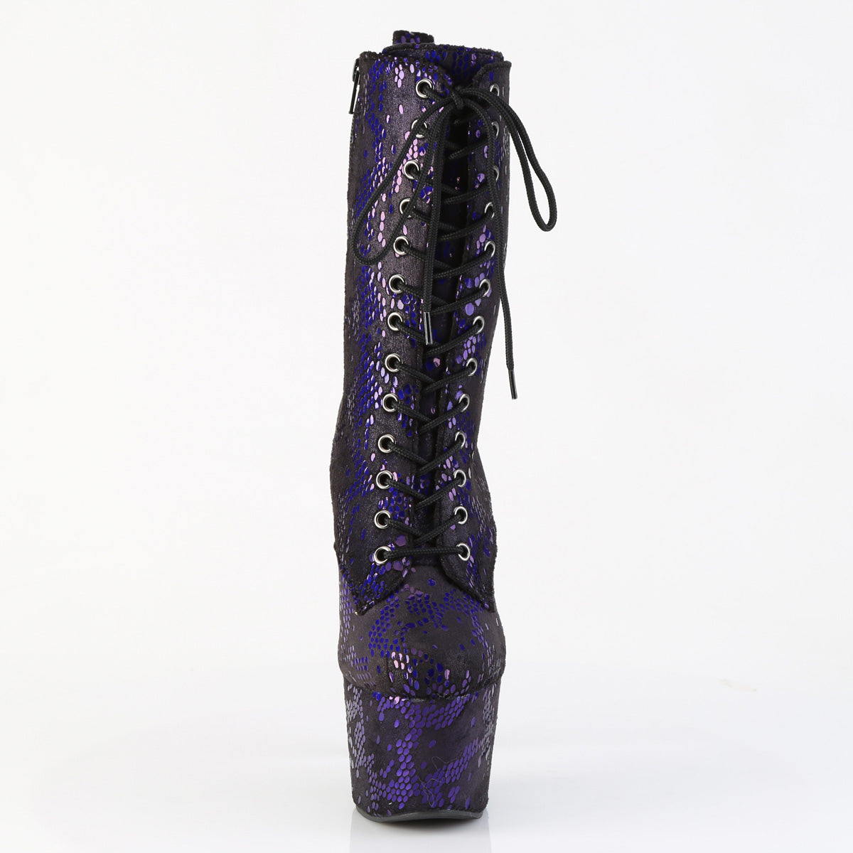 ADORE 1040S Platform Purple Metallic Snake Print Fabric/M Platform Lace-Up Front Ankle Boot, Side Zip
