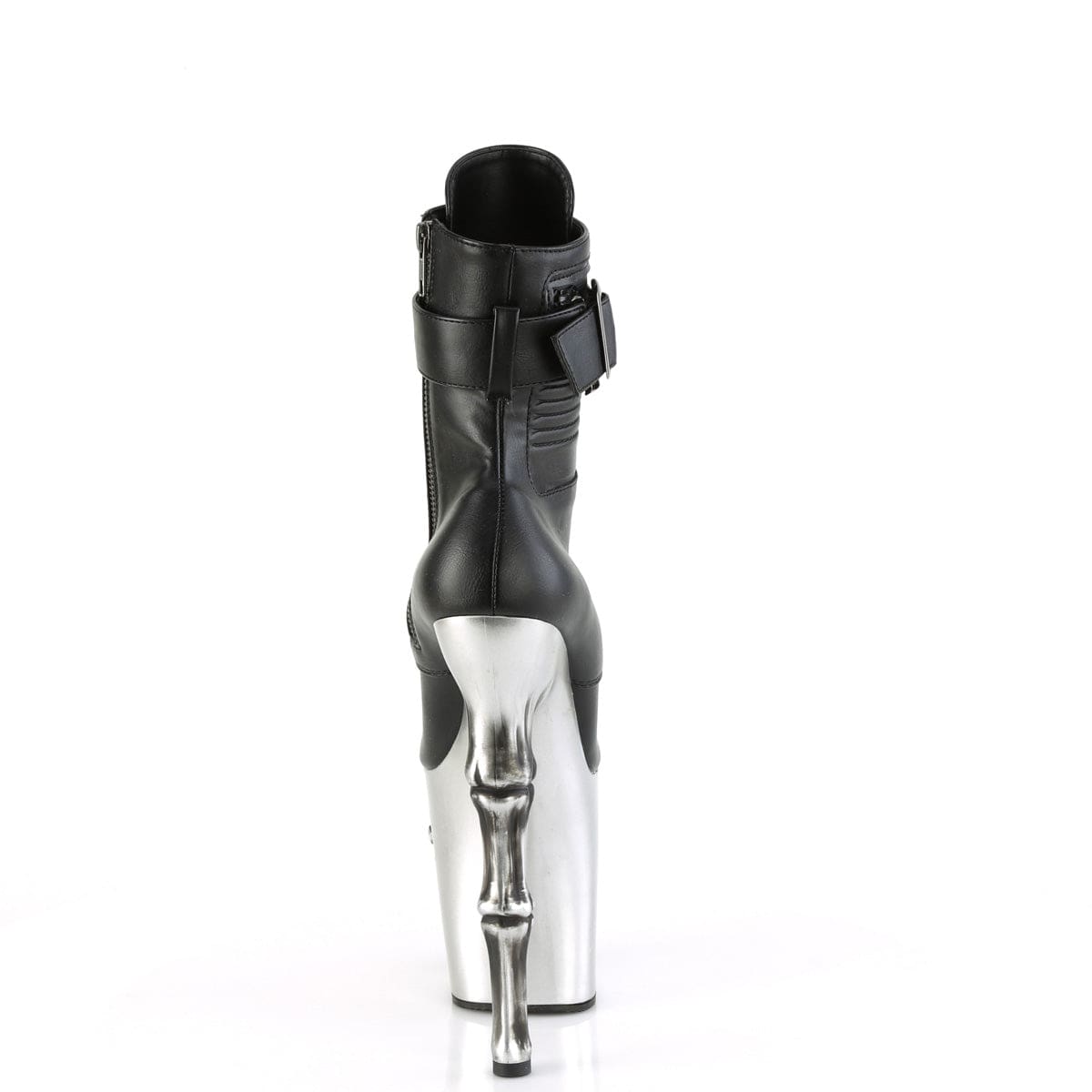 RAPlatformURE 1020STR LT Black Faux Leather/Silver Matte-Rubbed Black Skull Platform LED Ankle Boot, Side Zip