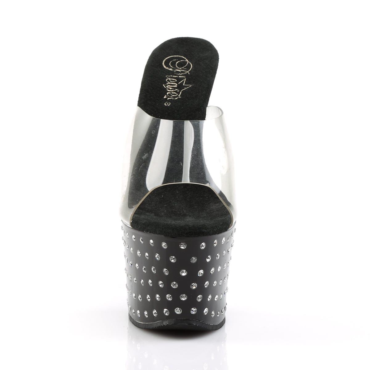 STARDUST 701 Clear/Black Platform Rhinestone Studded Platform Slide